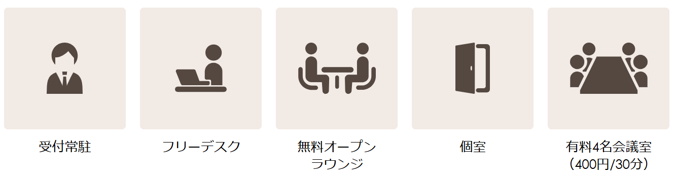 無料オープンラウンジはフリーデスクプランや個室プラン利用者は全店舗使えて、打合せで外部の方を招いても良いとのこと。これはとても便利ですね。カフェ難民から卒業できそうです。