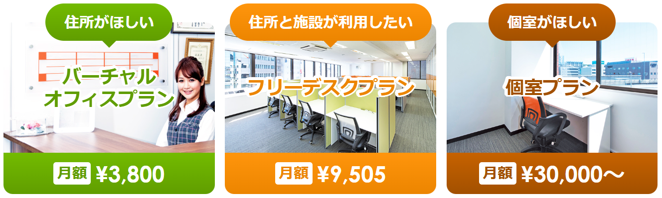 登記や住所のみ利用のバーチャルオフィスプランも人気があるみたいですよ。