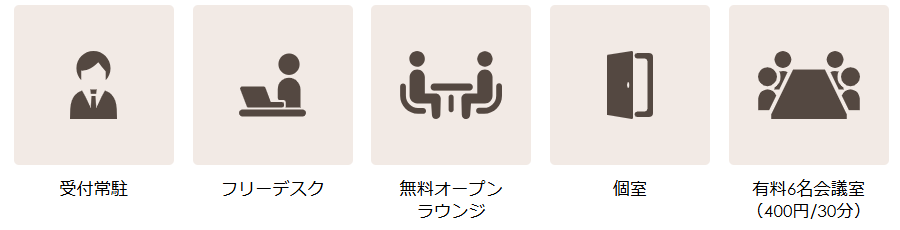 無料オープンラウンジはフリーデスクプランや個室プランだと、全店舗使えて、打合せで外部の方も一緒に使っても良いとのこと。これはとても便利ですね。スペースやカフェ難民から卒業できそうです。