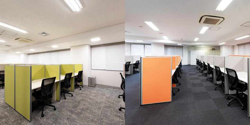 間仕切りのデスクがあるフリーデスクは、私語電話OKが47席・私語電話NGが36席ありました。エリアが分かれているのは静かに作業したい時や、ウェブミーティングしたい時など使い分けできてとても良いですね。しかもフリーデスクプランを契約すると全店舗使い放題だとか。。。✨