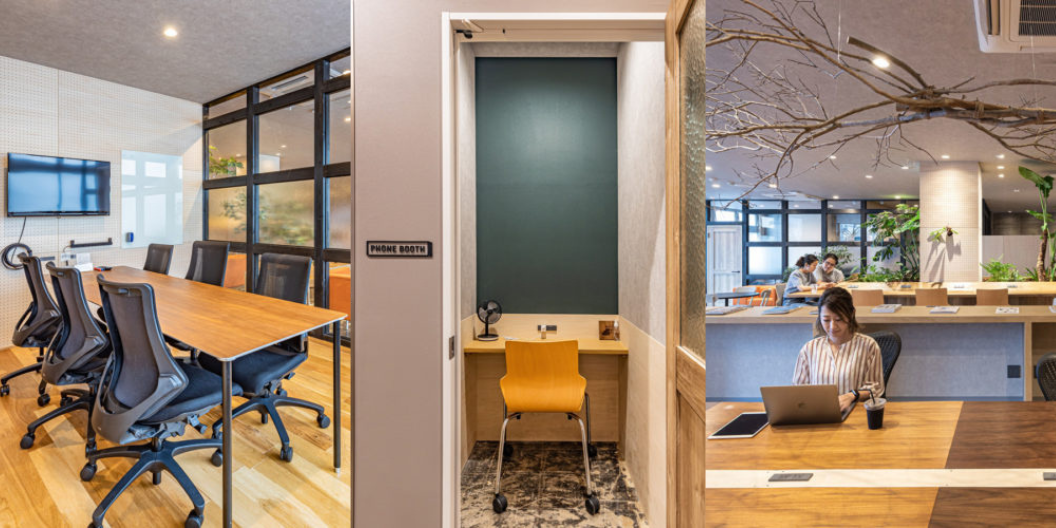 the KAIDAN Fujisawaは施設内が250㎡超の広々とした空間になっており、ワークスペース・フリースペース・MTGスペースに利用場所が分かれております。また、プライベート重視したボックス席、テレカンルームなども完備しております。