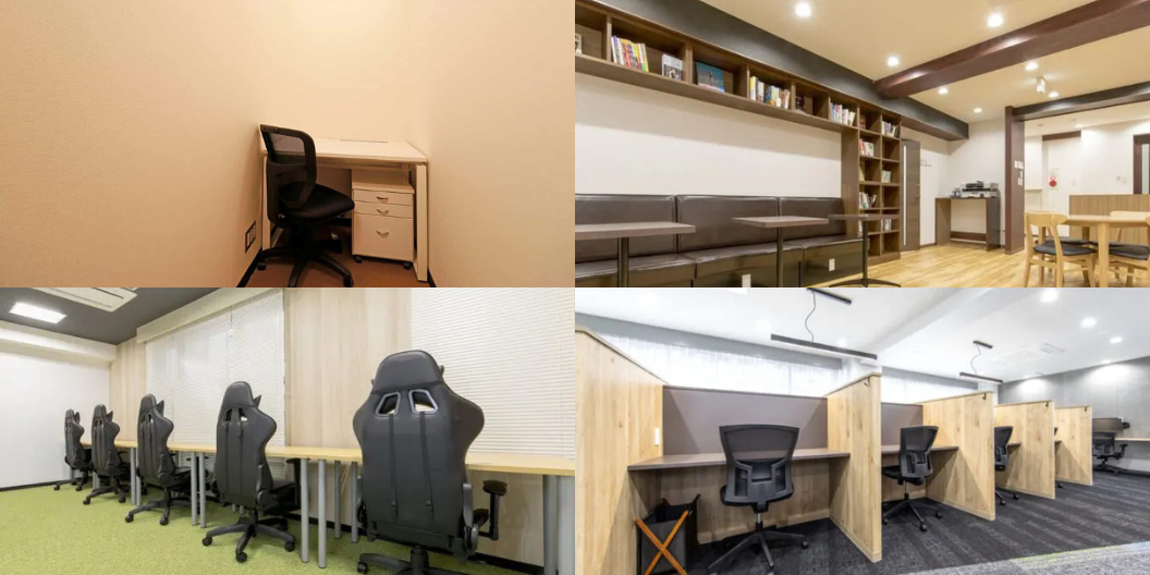 | プラン・料金 | 個室プラン:27,500円~/月 全日プラン:12,100円/月 土日祝プラン:4,400円/月 ライトプラン:1,650円/日(基本料金2,200円/月) 全拠点プラン:22,000 円/月 |