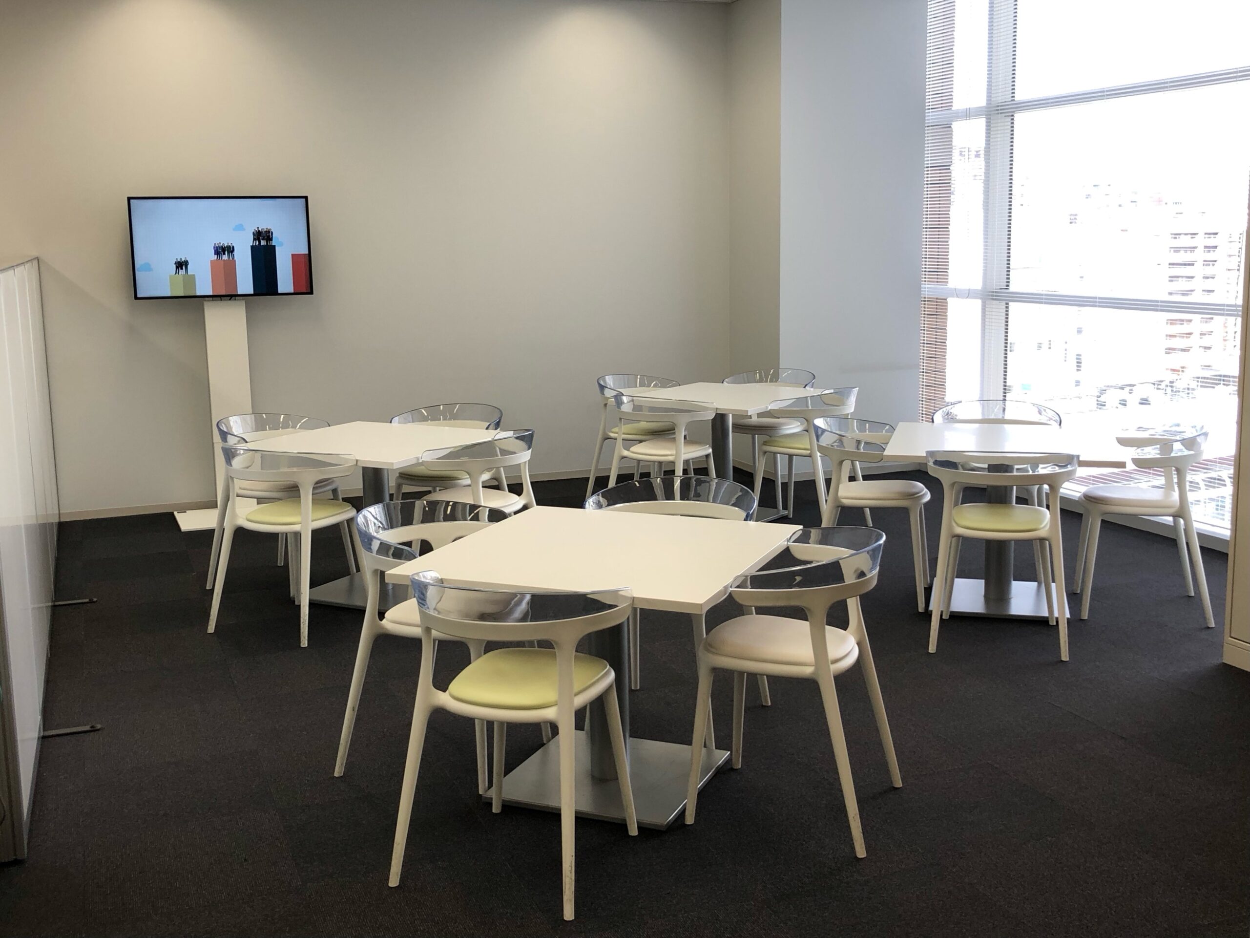 このラウンジは、来客の方も呼べるので、商談や軽い打ち合わせに便利。また、ランチ休憩やちょっとした息抜きにもぴったりの空間です。