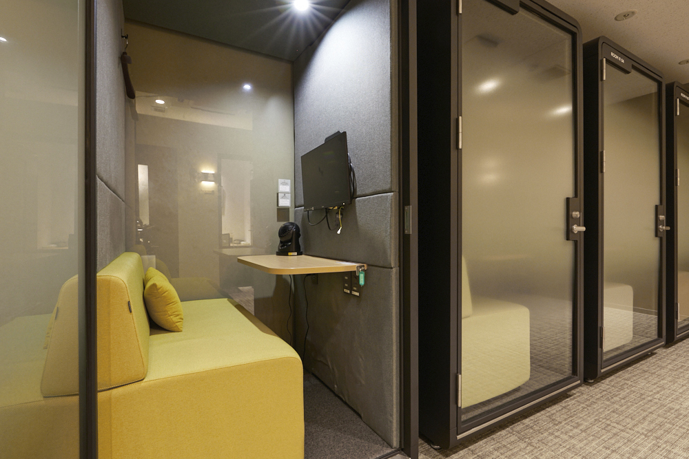 東日本橋駅から徒歩4分の便利な立地にあるコワーキングスペースです。利用者の働き方に応じて、個室タイプのシェアオフィスを15分単位で予約し利用することができます。