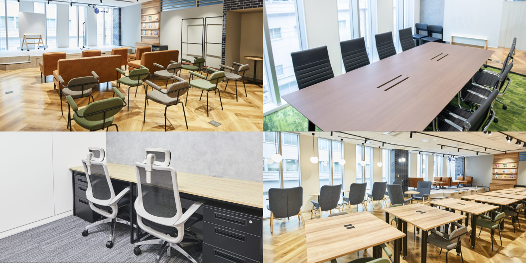 日鉄興和不動産が運営する会員制シェアオフィスです。開放感のあるラウンジ、テラスラウンジ、テレブースエリア、カフェスペース、本棚スペースなど、多様なスペースを完備。コーヒーや紅茶、炭酸水などの無料ドリンクはもちろん、サプリメントサーバーの設置、アロマディフューザーの貸し出しなどもあるサービスが充実しています。