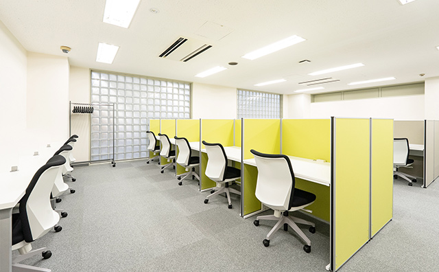 「コワーキングスペース」は個室ではございません。パーテーションで区切られたお席となります。