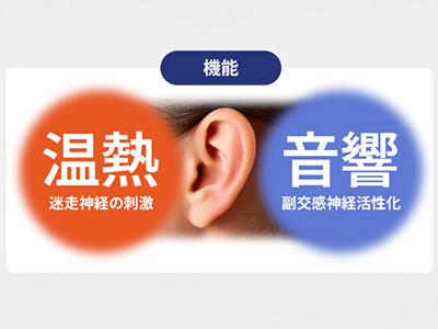 耳には自律神経を始めとした多くの神経が集まっています。耳を「約40℃に温める」ことによる迷走神経の刺激と、
