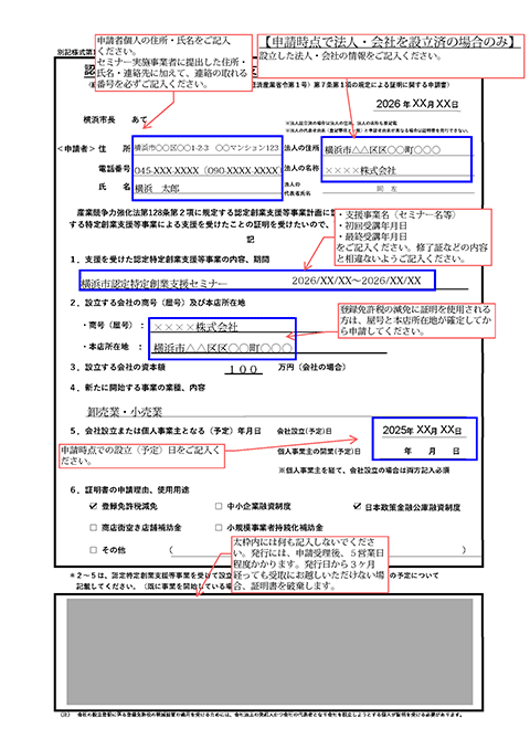 認定特定創業支援事業により支援を受けたことの証明に関する申請書