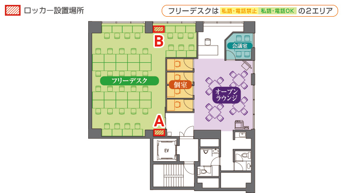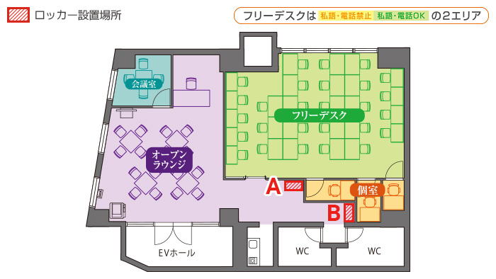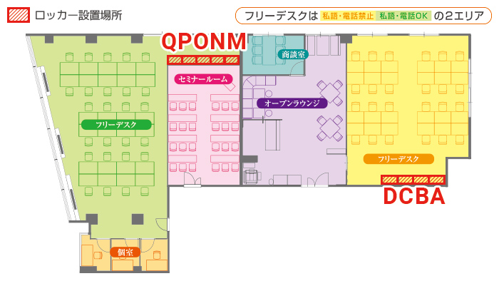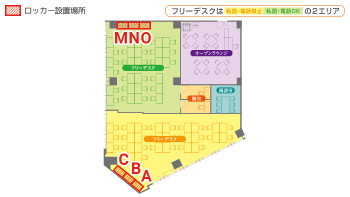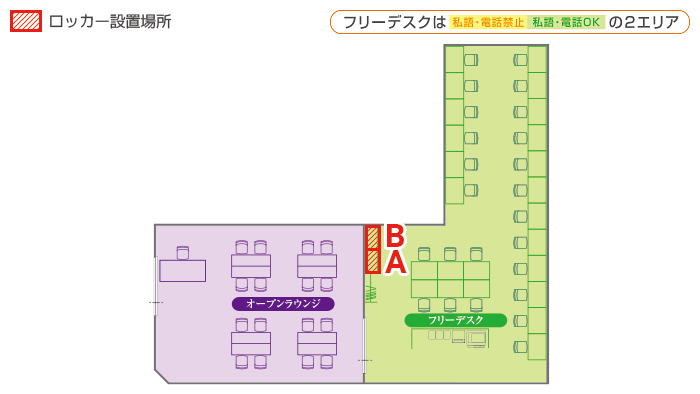 フリーデスクプラン」または「個室プラン」をご利用の方は利用住所に関係なく、全店舗のロッカーを1個あたり月額1,500 円(税別)でご利用いただけます。また個数の制限もございません。