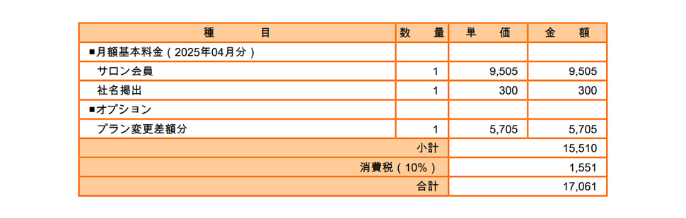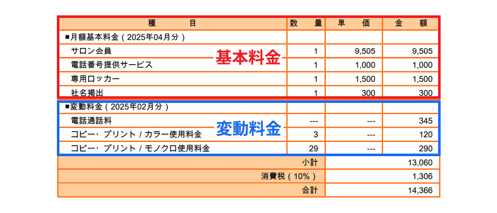 基本料金:レンタルオフィスや電話サービスなどの月額料金です。毎月、翌月分をご請求しています。