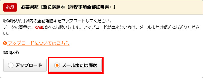 「メールまたは郵送」を選択してください。