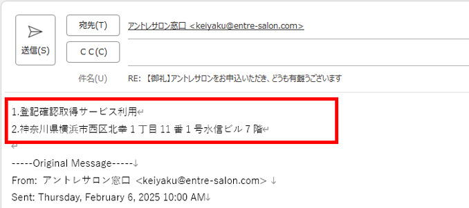 アントレサロンの新規お申込みの際に、法人としてアントレサロンの住所を利用したい方は、