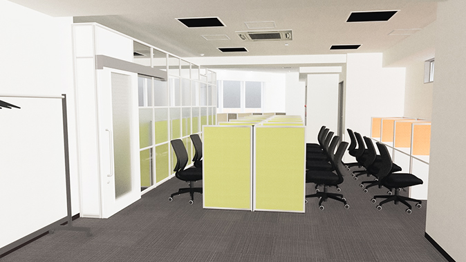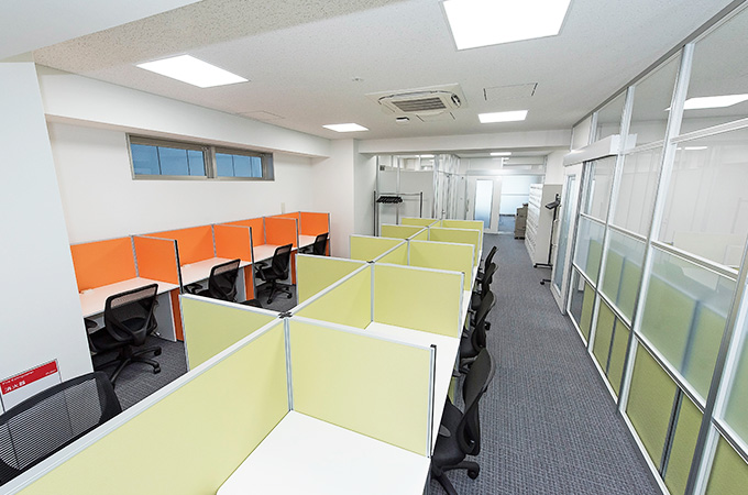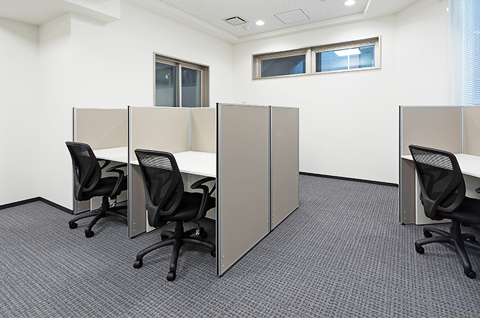 フリーデスクは2種類あり、オンラインでの打合せや電話をしながら仕事ができるエリアと、集中して仕事をしたい時に適した私語・電話を禁止しているエリアがあります。また、隣の人が気にならない高さの間仕切りがあるデスクをご用意しており、好きな時間にお好きな席をご利用可能です。
