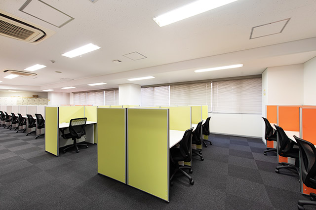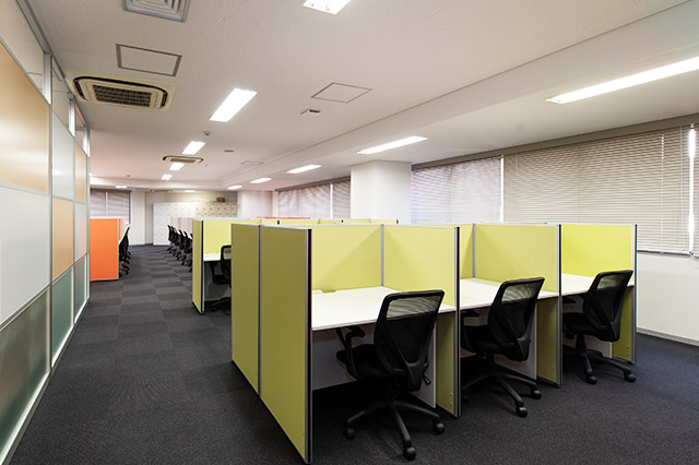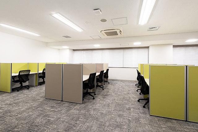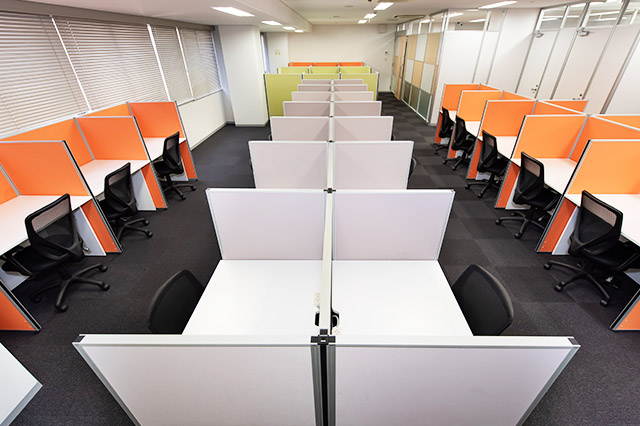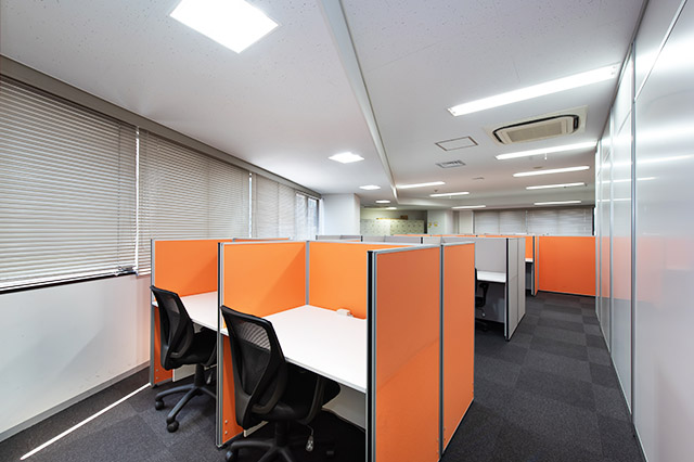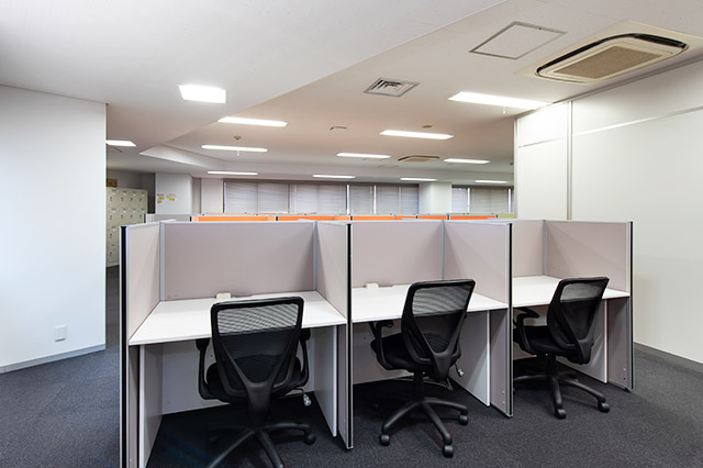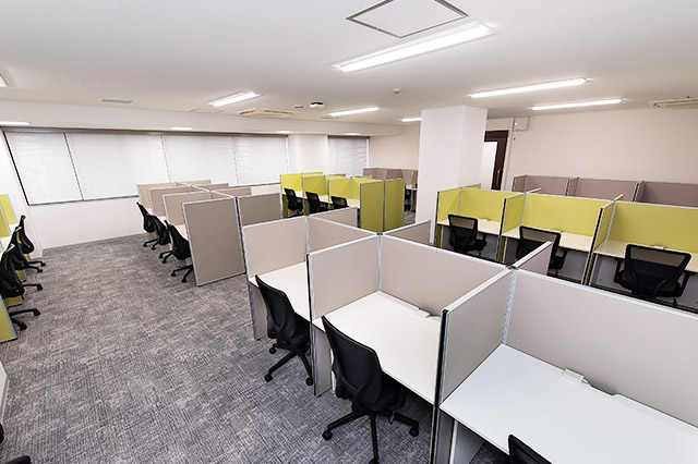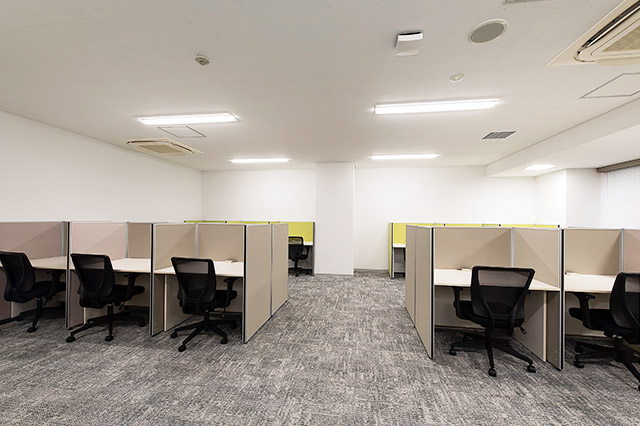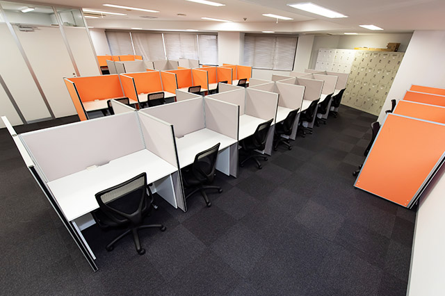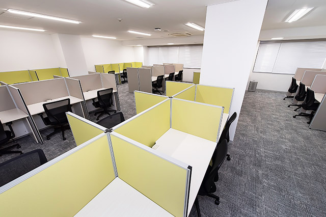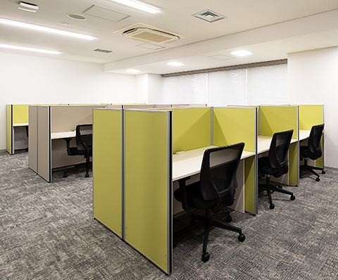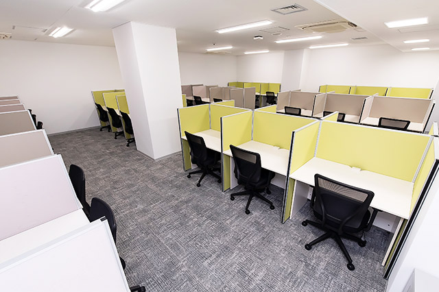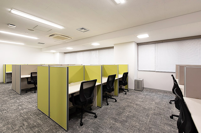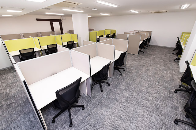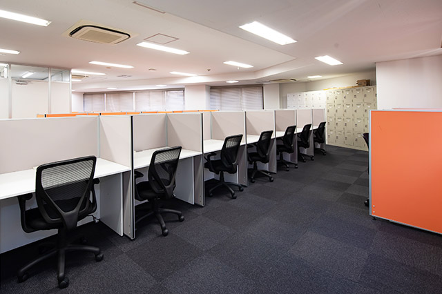 常駐のスタッフが、御社宛の来客を受付致します。フリーデスクは、会員様同士の打ち合わせや電話をしながら仕事ができるエリアと、集中してお仕事をしたい時に適した私語・電話を禁止しているエリアがあります。また、隣の人が気にならない高さの間仕切りがあるデスクをご用意してあり、お好きな時間にお好きな席をご利用可能です。