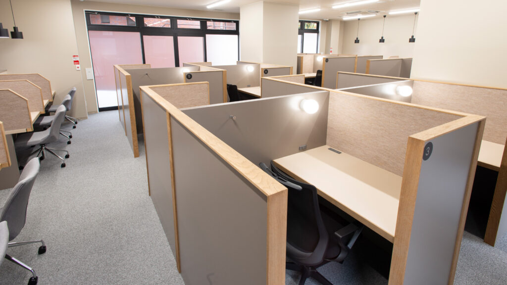 3社共同のプロジェクトから生まれたオフィスです。B1Fには自由に利用できる広々としたキッチンスペースが完備されており、たくさんのコミュニティも広がる憩いの場となっています。1Fは集中してコワーキングスペースで働きたい方向けのスペースが広がり、ミーティングルームも2部屋完備されています。2Fは1〜3人用の個人ブースが用意されており、クリエイターの街らしく、個室壁はギャラリーのように作品を展示できるような仕様になっています。