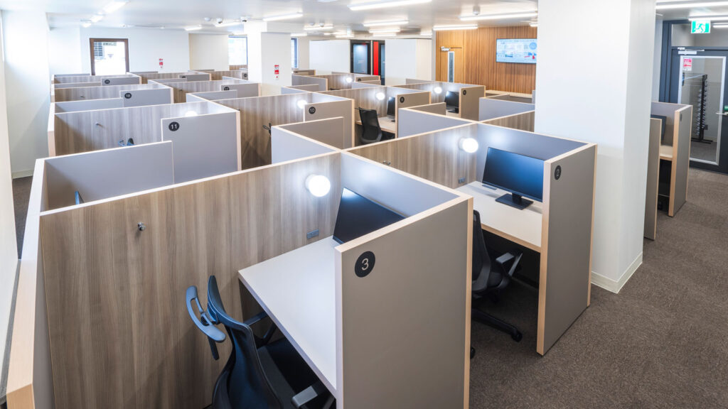 個室タイプのワーキングスペースで、15分単位で予約が可能です。スマホから簡単に直前の利用予約も可能なのが、とても利用しやすいです。