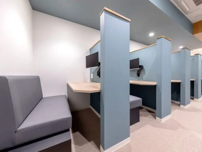 京急本線横須賀中央駅から徒歩5分の場所にある、24時間365日使えるコワーキングスペース・レンタルオフィスです。コワーキングスペースは、食事可能ブースや、WEB会議用ブース、しきりのある集中ワークブースなど、多様なビジネススタイルに対応可能です。また、敷金など一切不要の完全個室も35室完備しておりますので、初期費用を抑えて、サテライトオフィスや支店などとして使うことができます。