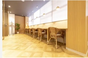 | 特徴 | 樹木に囲まれた秘密基地のような「Tree House」をデザインコンセプトに木目調の癒しあふれる空間。 木目調のデザインと緑に囲まれた空間が、利用者や来訪者にリラックスと安心感を提供しゆったりと作業が可能です。 |