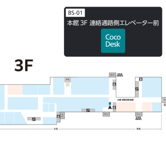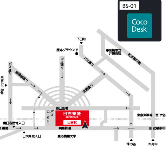 | 施設名 | CocoDesk 日吉東急アベニュー 本館3F 連絡通路側エレベーター前 |