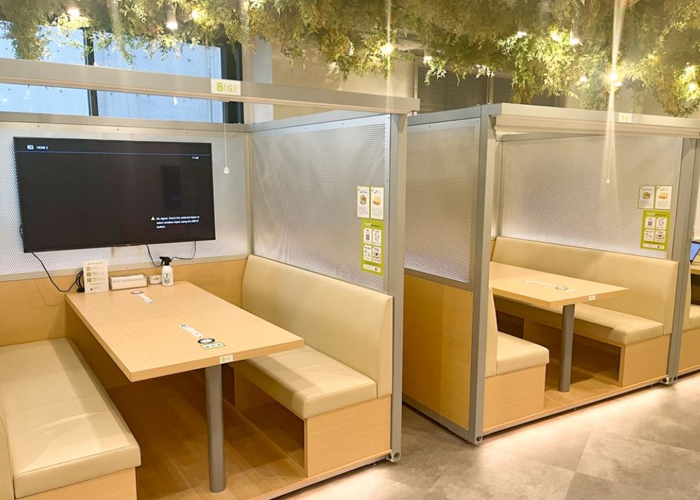 ・C席(1名用カウンター席)税込 100円/15分- ・S席(1名用半個室席)税込 200円/15分- ・PS席(1名用個室席)税込 250円/15分- ・G席(定員6名半個室席)税込 400円/15分- ・PG席(定員6名個室席)税込 625円/15分- |