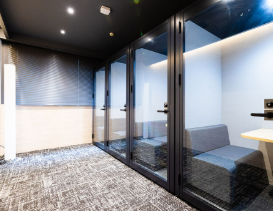 | 特徴 | 共用設備として、会議室6室(最大16名収容可能)、WEB会議室、電話ブース、カフェスペース(COSTA COFFEEの無料提供)、ラウンジ、複合機、ドリンク自動販売機などが整備されています。また、平日9:00〜18:00にはレセプションサービスも提供され、来客対応や宅配便の受け取りなどが行われています。さらに、インターネット(光回線)やクラウド電話、シュレッダーなどのIT・事務サポートも充実しています。 |