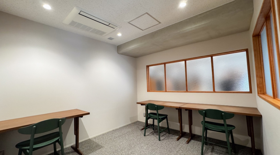 | 特徴 | 高速Wi-Fi、電源、フリードリンク、複合機、会議室、個室ブースを完備しています。オンライン会議も可能です。 |
