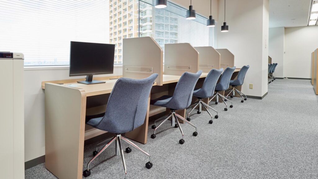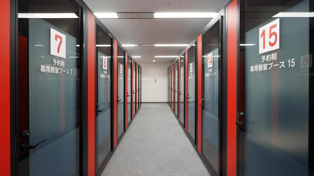 | 特徴 | ブース席は全部で51席、8名用会議室が15分単位で利用可能です。また、鍵あり、モニターありの着席個室ブースが15分単位でご利用いただけます。複合機やWi-Fi、TELブース、フリードリンクなど設備が整っております。 |