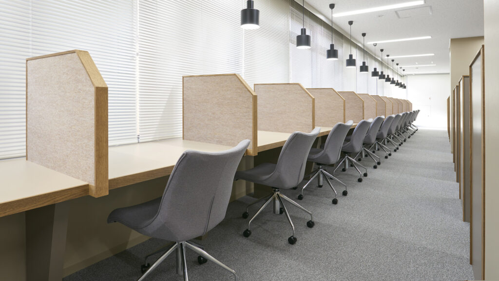 | 特徴 | 全38席のオープンブースと鍵あり・モニターありの会議室や着席個室ブースが15分単位でご利用いただけます。(着席個室ブース専用店舗)複合機やWi-Fi、TELブース、フリードリンクなど設備が整っております。 |