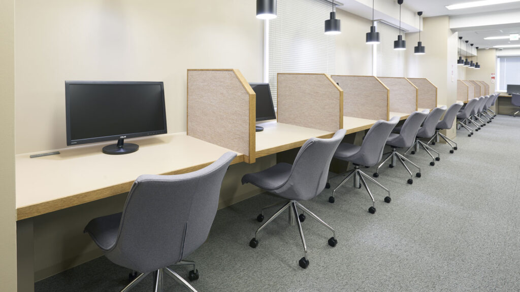 | 特徴 | ブース席は全部で31席、8名用会議室が15分単位で利用可能です。また、鍵あり、モニターありの着席個室ブースが15分単位でご利用いただけます。複合機やWi-Fi、TELブース、フリードリンクなど設備が整っております。 |
