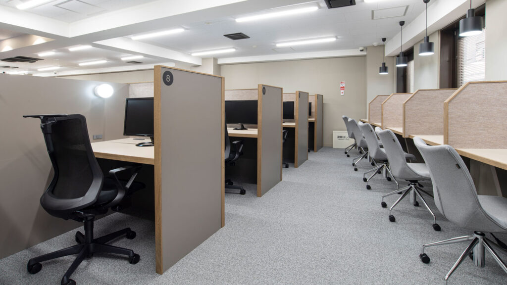 | 特徴 | ブース席は全部で23席、4名用会議室が15分単位で利用可能です。また、鍵あり、モニターありの着席個室ブースが15分単位でご利用いただけます。複合機やWi-Fi、TELブース、フリードリンクなど設備が整っております。 |
