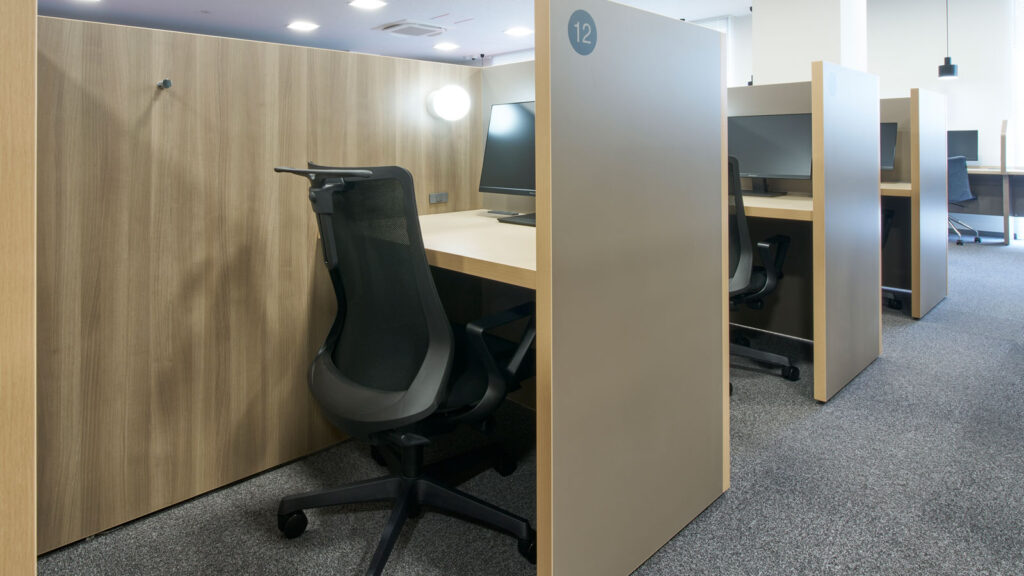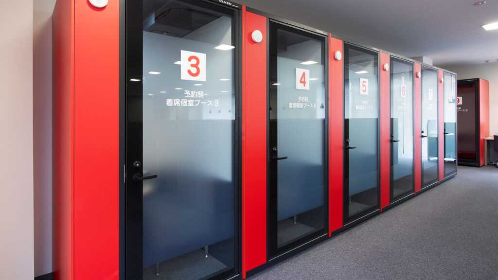 | 特徴 | 全39席のオープン / ブースに、鍵あり・モニターありの会議室や着席個室ブースが15分単位でご利用いただけます。複合機やWi-Fi、TELブース、フリードリンクなど設備が整っております。 |