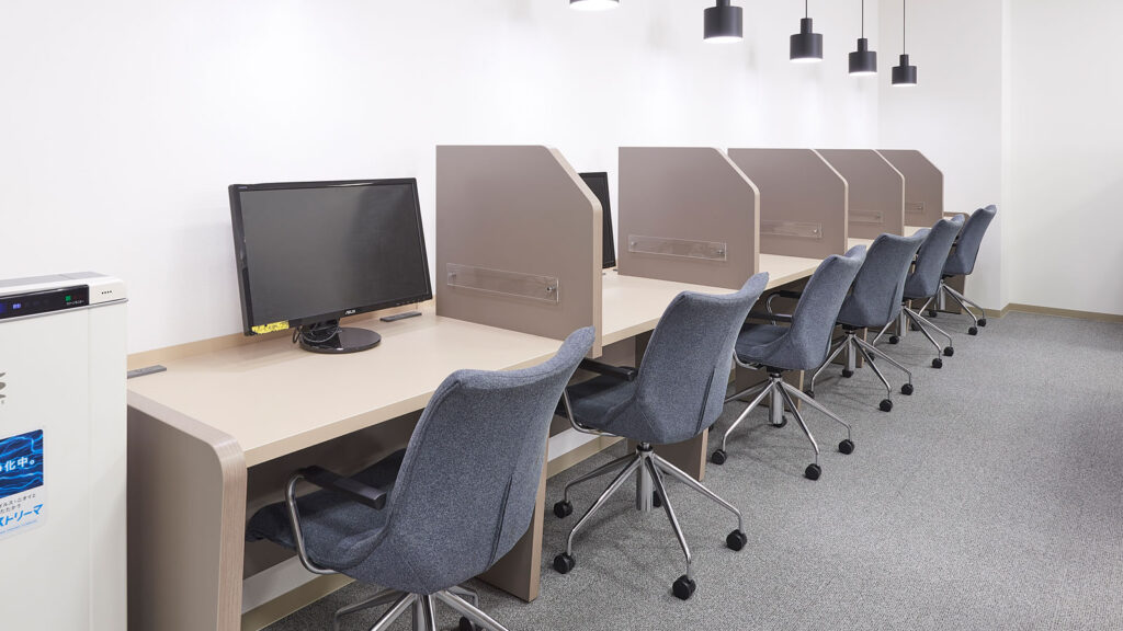 | 特徴 | 全31席のオープン / ブースに、鍵あり・モニターありの会議室や着席個室ブースが15分単位でご利用いただけます。複合機やWi-Fi、TELブース、フリードリンクなど設備が整っております。 |