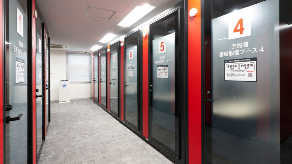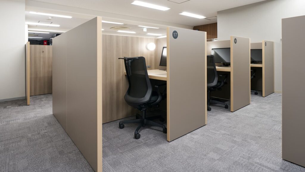 | 特徴 | 全21席のオープン / ブースに、鍵あり・モニターありの会議室や着席個室ブースが15分単位でご利用いただけます。複合機やWi-Fi、TELブース、フリードリンクなど設備が整っております。 |