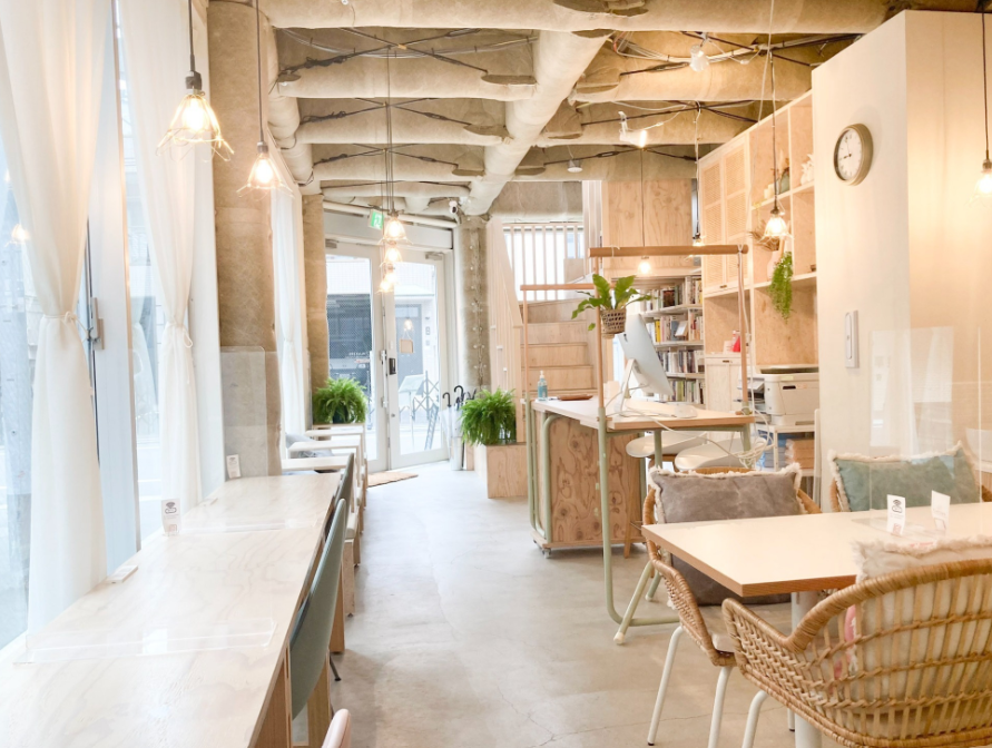 | 特徴 | 高速Wi-Fi、電源、フリードリンク、複合機、会議室を完備しています。オンライン会議も可能です。 |
