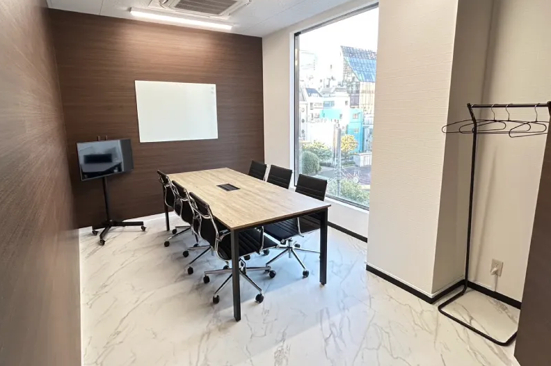 新橋駅から徒歩2分の場所にあるアクセス抜群かつ、貸し会議室はモダンでオシャレな内装の6名様までご利用可能です。
