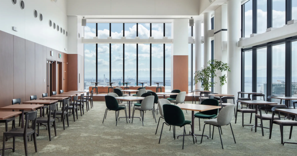 Vlag yokohama(フラグヨコハマ)は、横浜駅直結のTHE YOKOHAMA FRONT最上階(地上42階)にある、オフィスや会員制ワークラウンジ、カフェ&バー、ホールなどがそろう複合施設です。法人向けのプライベートオフィスがあり、会員制ワークラウンジ利用など、共創のためのコミュニケーションが活発化するサービスがあることが特徴です。