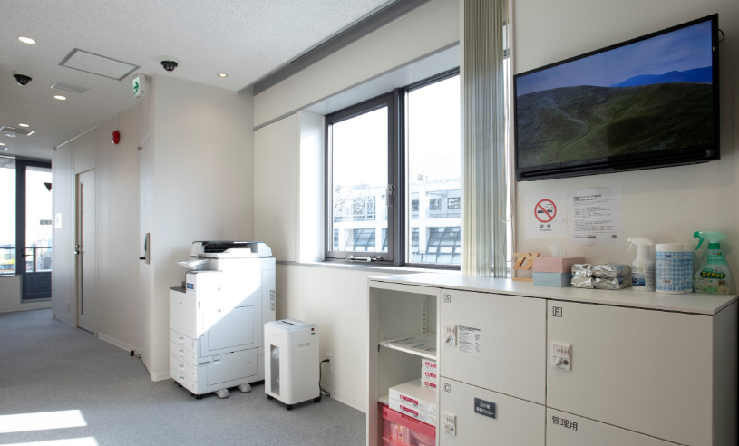 オプションで複合機とコンセント付きのレンタルロッカーもございます。