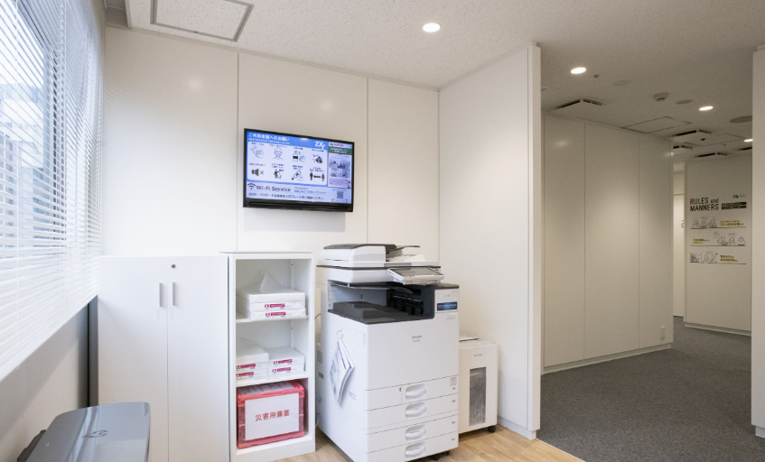 オプションで複合機とコンセント付きのレンタルロッカーもございます。