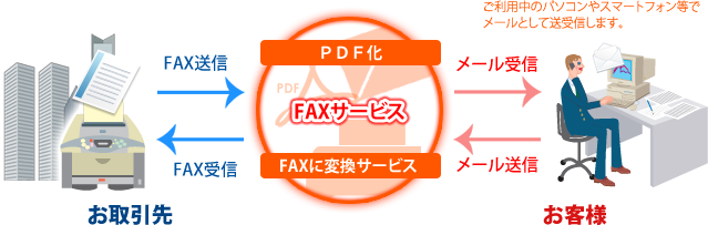 貴社専用の番号でFAXを送受信するサービスです。FAX機は不要でお使いのメールを使用しFAXの送受信を行います。
