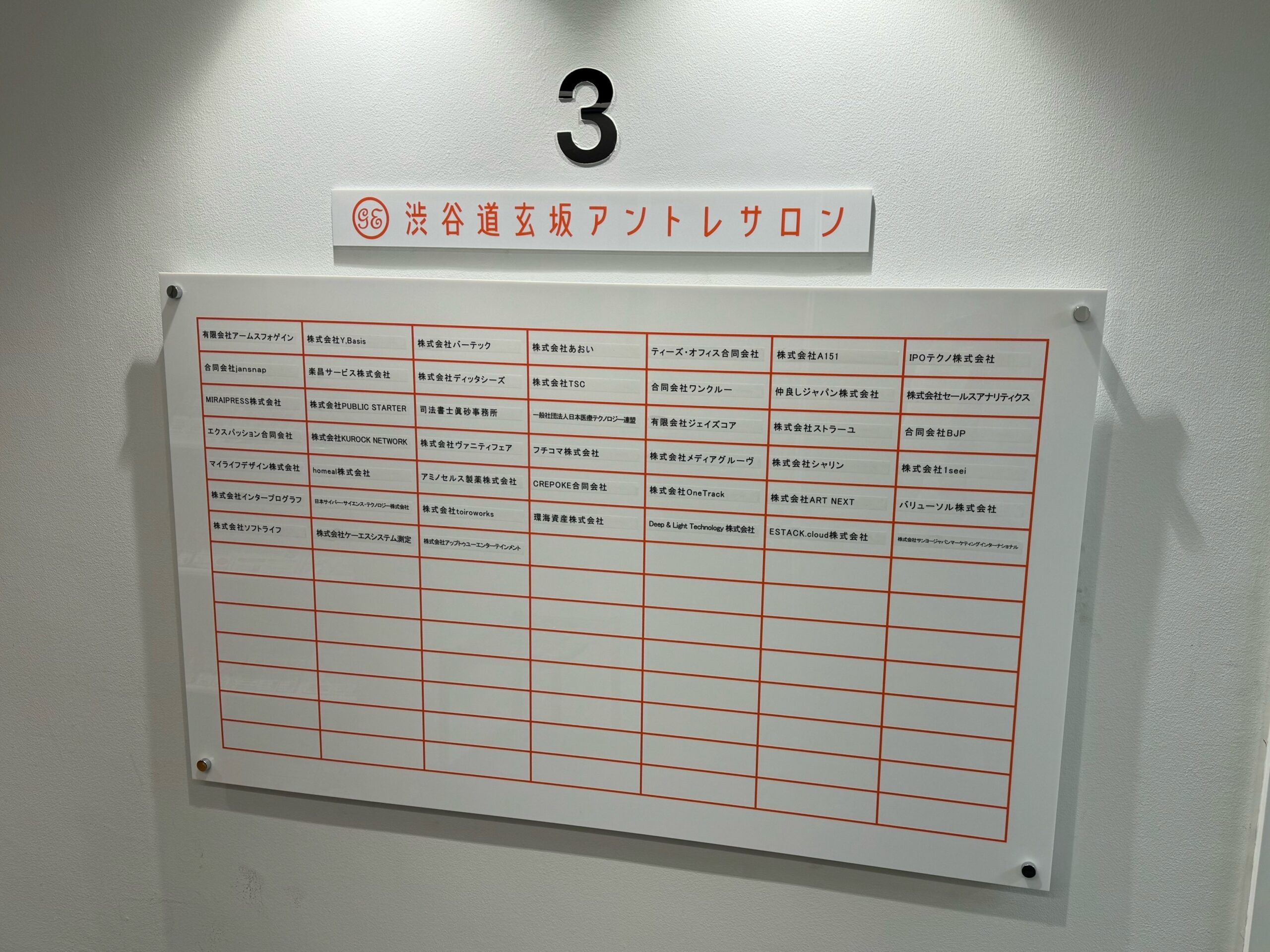 平素より、渋谷道玄坂アントレサロンをご利用いただき、誠にありがとうございます。 このたび、お客様からのご要望にお応えし、2025年5月29日付で渋谷道玄坂アントレサロン3階のエレベーターホールに設置している社名掲出プレートの掲出枠を拡充いた…