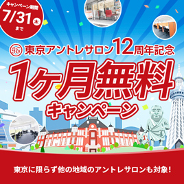 おかげさまで開設12周年!1か月無料キャンペーン 平素は格別のご愛顧を賜わり、厚くお礼申し上げます。 「東京アントレサロン」は、今月で開設12周年を迎えました。 これもひとえに皆様のご協力とご支援のたまものと深く感謝しております。 開…