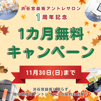 おかげさまで開設1周年!1か月無料キャンペーン 平素は格別のご愛顧を賜わり、厚くお礼申し上げます。 「渋谷宮益坂アントレサロン」は、今月で開設1周年を迎えました。 これもひとえに皆様のご協力とご支援のたまものと深く感謝しております。…