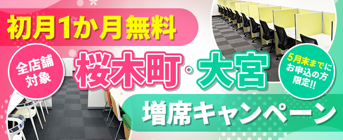 バーチャルオフィス・フリーデスク・個室プランの月額料金が、初月1か月分無料になります。